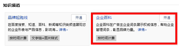 1、登錄百度推廣平臺,在“全部商業產品”中“知識頻道”里面找到企業百科,勾選同意協議并開通;