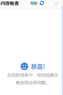 最后在提交前,在右側的“內容檢查”里看詞條是否存在問題。如果自動檢查沒有發現任何問題,那么提交上去一般都可以通過。