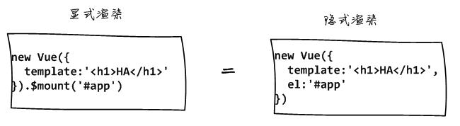 如果Vue.js檢測到你指定了el配置項,將在內部自動地執(zhí)行渲染 —— 這時你不再需要額外調用$mount()方法了: