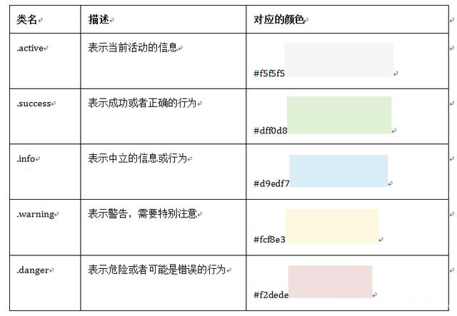 Bootstrap還為表格的行元素提供了五種不同的類名,每種類名控制了行的不同背景顏色