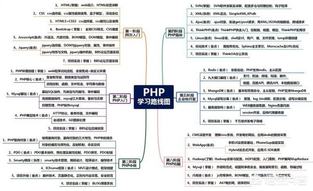 在眾多語言當中,蘇州網站建設感覺php應該是比較容易學的編程語言了。給大伙提供一張學習圖,需要的可以根據圖中所列學習起來。