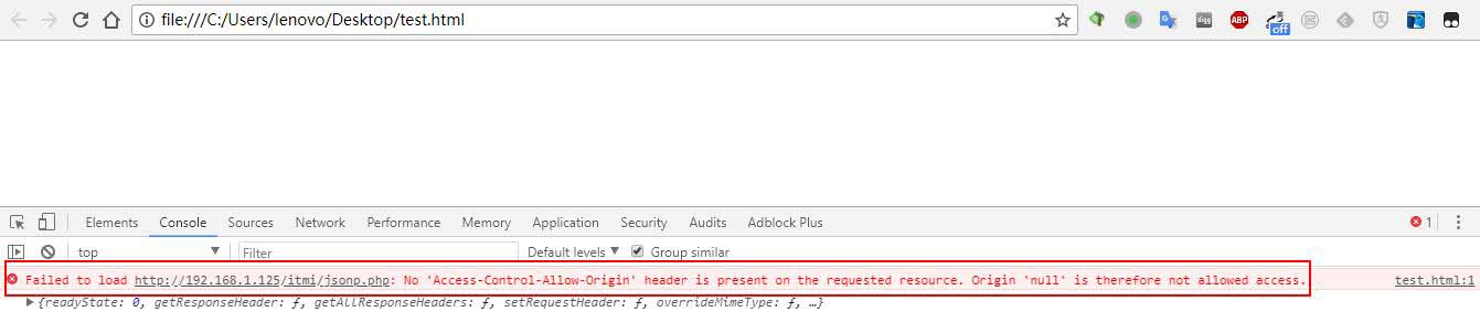 通過上面的例子可以看到,跨域請求的時候被瀏覽器阻止了。下面我們就用jsonp的方式來解決javascript的跨域請求問題。